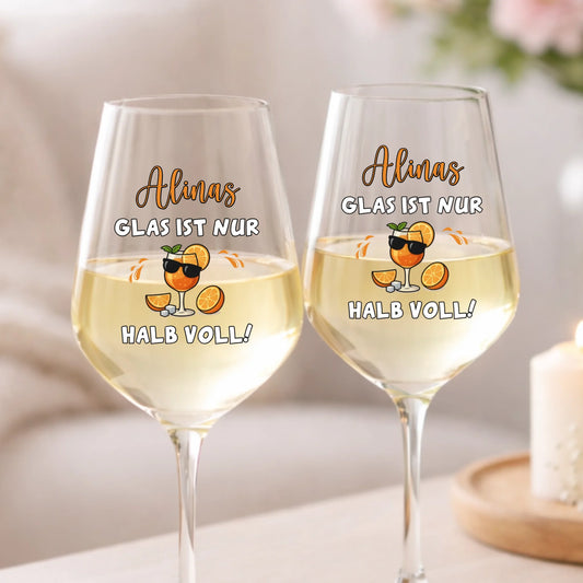 Halb voll - Personalisiertes Weinglas